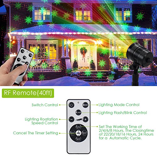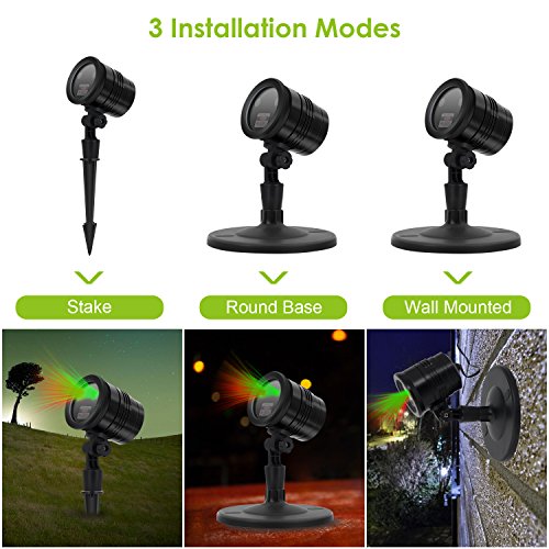 ◆Amazing Christmas Illuminations -- Never again go through the trouble of unwrapping and hanging individual strands of Christmas lights. Simply place Christmas Laser Light in the ground outside or on the floor inside, turn on and watch your garden or house be instantly saturated in gorgeous green and red lights. Perfect for creating a festival atmosphere