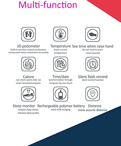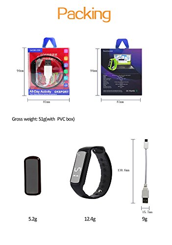 Studio : OKSPORT Publisher : OKSPORT Binding : Misc. Product Description Specs: Dimention: 242x16.5x9 mm Weight: 12.4g Display: LED 7 segment display Range of Temperature -9℃ ~ 50℃, 14℉ ~ 122℉ Data transfer mode: USB Port Accuracy: ±1% Number of step: no limit Data memory: 24 hours step counter,save 30 days data Battery life: > 300 times charge - discharge cycles Voltage: DC=5V Atmospheric pressure: 860hPa ~ 1060hPa Operating Temperature: -9℃~50℃ Features: 3D pedometer: built-in sensitive triaxial acceleration sensor, catch every movement accurately. Temperature: know current temperature. See time when raise hand do not need to press smart bracelet.(Sometimes this function is off, you can use the PC software to open it.) Calorie: can check and record sports data via smart bracelet/computer. Time/date: synchronization through computer by one touch. Sleep monitor: analysis sleep status, improve sleep quality. Silent flash remind: silent remind function. Distance: more accurte distance. Rechargeable polymer battery: micro USB charging. PC software: Cooperate with PC software to record and check the sports data(Steps Distance Calories) or set sport target task to make sport more fun. Package: 1 x Smart Bracelet 1 x USB Cable 1 x User Manual Note: There has an ultra-slim film on the surface of the package for protecting. Tear it you will get a new-clean packet. Kind note: The battery indicator might have a mistake when you charge the bracelet because of the large current, please regardless it and let the bracelet charged for at least 2 hours. Please be rest assured that this won't impact the function and use. When you receive the goods, the package has a detailed operating instructions, the PC software download link is included. :) 0