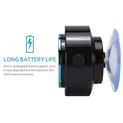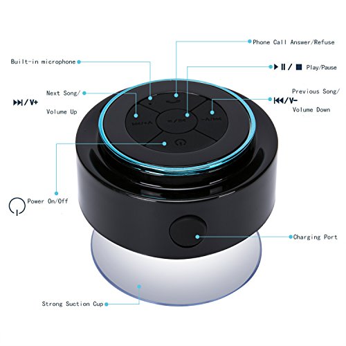 - You can place the speaker on a flat surface of substance with Its silicone suction cup anywhere conveniently. 3W output speaker driver ,built-in mic, and control buttons