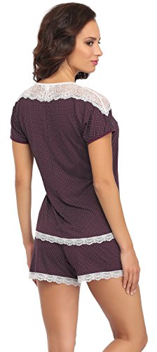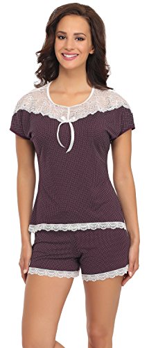 -. Binding : Textilien -. Brand : Merry Style -. Department : Damen -. Feature : Damen Pyjama; Kurze Ärmel; Kurze Hose; Sehr komfortabel, feminine und elegant / Das Oberteil ist auf der Rückseite leicht länger geschnitten; Im Schulterbereich aus schöner Spitze; Unterer Abschluss mit Spitzenband / Shorts mit elastischem Bund; Beinabschlüsse mit Spitzenband verziert / Hauptsächlich aus atmungsaktiver, flexibler und angenehm zu tragender Viskose / Hergestellt in der EU -. IsAdultProduct : 0 -. ProductGroup : Apparel -. ProductTypeName : SLEEPWEAR -. Title : Merry Style Damen Schlafanzug Pauleen
