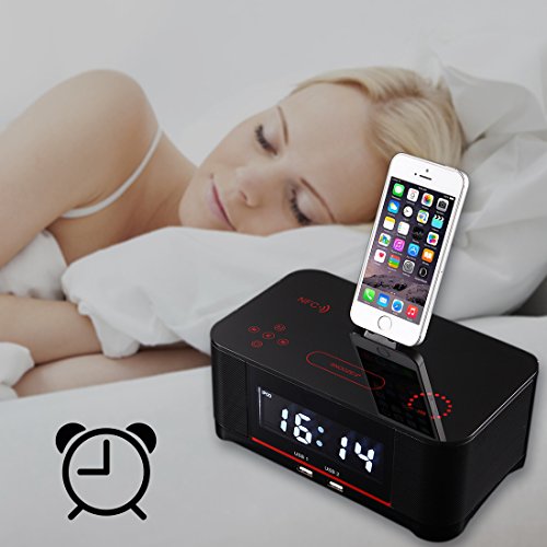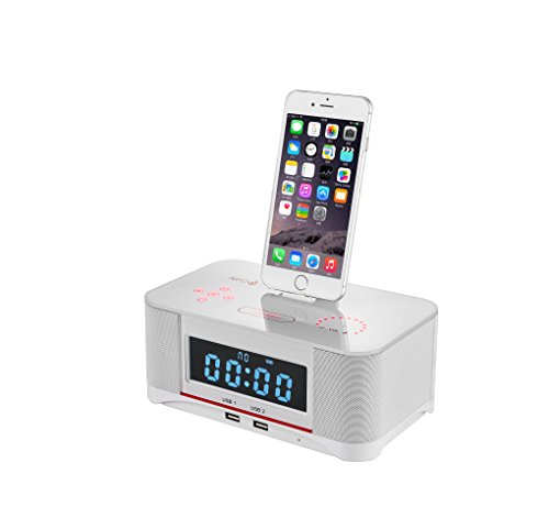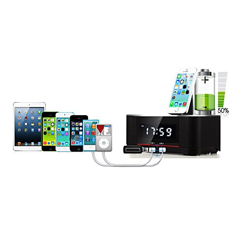 Built in Apple Lightning dock, compatible with iphone 7 / 7plus / 6s/ 6splus/ 6 /6 plus/ 5s /5c / iPad 4 / Air 1 & 2 / Mini 1&2&3&4, iPod Touch 5th & 6th Gen and iPod Nano 7th Gen. Charge your phone and play your favorite songs simultaneously. The Radio also comes with 2 USB changing outlets for non-Apple devices.