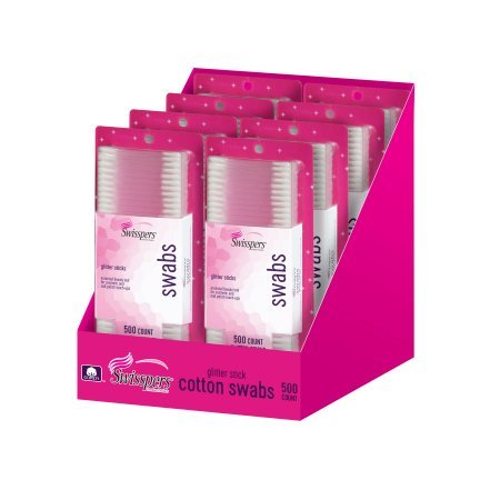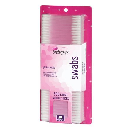 Studio : Swisspers Publisher : Swisspers Binding : Misc. Product Description 500ct Cotton Swabs Glitter sticks Double-tipped plastic glitter sticks Blends: eye liner, lipstick and lip gloss. Applies eye shadow, fragrance oil, ointments and creams Removes: Nail polish, smudges from eye makeup and lipstick Swisspers Glitter Sticks Cotton Swabs: 0