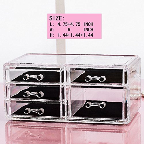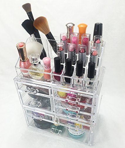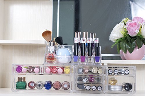 Can receive lipstick, nail polish, make-up brush, lip gloss and other cosmetics. Save you more space, at a glance. Let you get the first time you need the make-up tools.Acrylic Set Dimension: 9.5x6x11.6inches