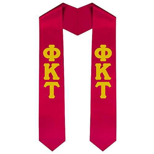 Binding : Apparel Product Description Phi Kappa Tau fraternity Graduation Sash Stole These Sorority Sashes are made of Bridal satin and measures 5" width 60" length. They come in your choice of colors: Available in black, white, light Grey, pink, salmon pink, red, maroon, purple, gold, navy blue, royal blue and hunter green. Greek letters on left. Custom text on right for year, chapter, etc. These Phi Kappa Tau fraternity shirts are cotton and come in unisex sizing. 0