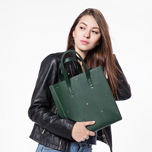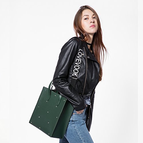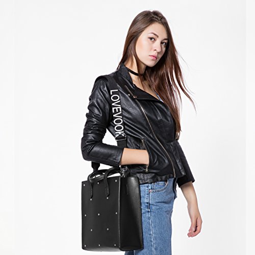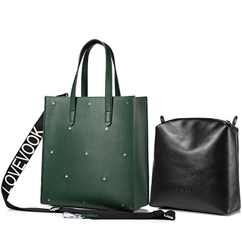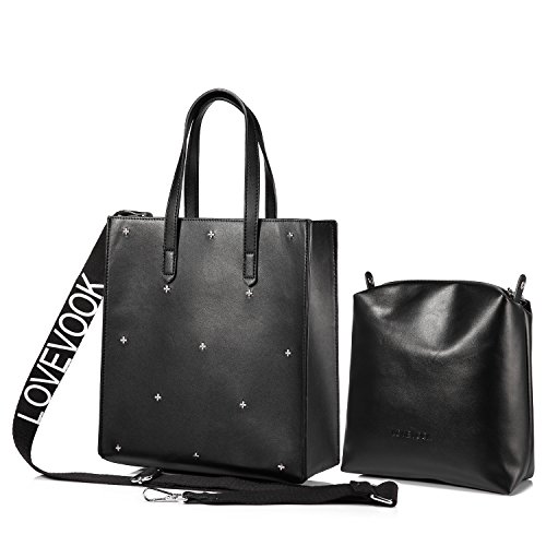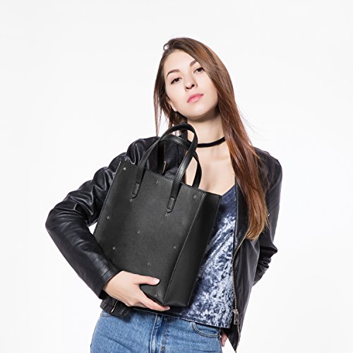-. Feature : ★ DESIGN: Crossed rivets in front. 2 PCS in 1 package. A open tote for taking in or out easily. The flat bot make it stand on. A black purse inside, also can be taken out. Come with a removable and adjustable strap for carry the tote as a handbag, shoulder bag or cross body bag / ★ CAPACITY: The main tote pocket can fit your iPad and A4 magazine, the black purse can carry your wallet, makeups, sunglasses and other daily items, very well to keep everything organized / ★ STURDY MATERIAL : High quality synthetic leather with durable hardware, synthetic leather lining. Not easy to lose it's shape / ★ OCCASION AND DIMENSION: Perfect for shopping, working, travel, office, dating, office and other daily occasions. Size: 10.4" x 11.4" x 4.5"(W x H x D) Strap Height:5.9" Weight is about 1.78lb / ★ 100% MONEY BACK GUARANTEE: If broken, damaged or wrong items received, just contact us and send us a picture, we will full refund or resend within 24 hours