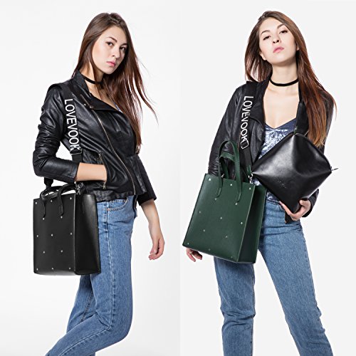 -. Title : Tote Bag Handbags For Women Top Handle Satchel Shoulder Bag Travel Bag Designer Purse 2 Pieces Set With Crossed Rivets