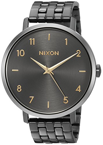 -. Binding : Watch -. Brand : NIXON -. Color : Gunmetal / Silver / Gold -. Department : womens -. EAN : 0882902105270 -. Feature : A future heirloom is born at the intersection of fashion and function. Scandinavian influences and menswear-inspired details make the Arrow a modern classic. / 3-hand movement with fashion meets function sensibility. / Japanese-quartz Movement / Case Diameter: 38mm / Water resistant to 50m (165ft: in general, suitable for short periods of recreational swimming, but not diving or snorkeling -. Label : Nixon Inc. -. Manufacturer : Nixon Inc. -. Model : A10902765 -. MPN : A10902765 -. PartNumber : A10902765 -. ProductGroup : Watch -. ProductTypeName : WATCH -. Publisher : Nixon Inc. -. Studio : Nixon Inc. -. Title : Nixon Women's 'Arrow' Quartz Stainless Steel Casual Watch, Color:Grey (Model: A10902765) -. UPC : 882902105270