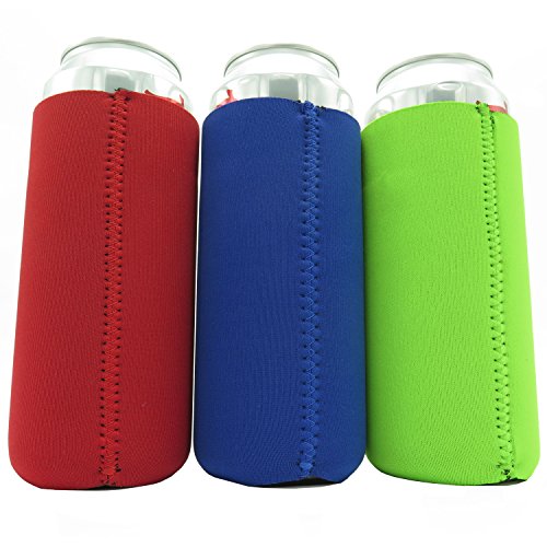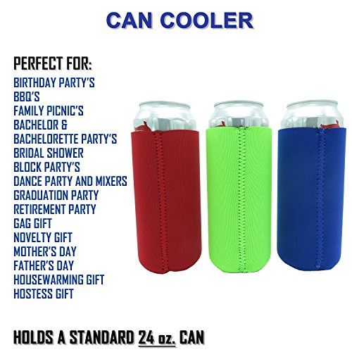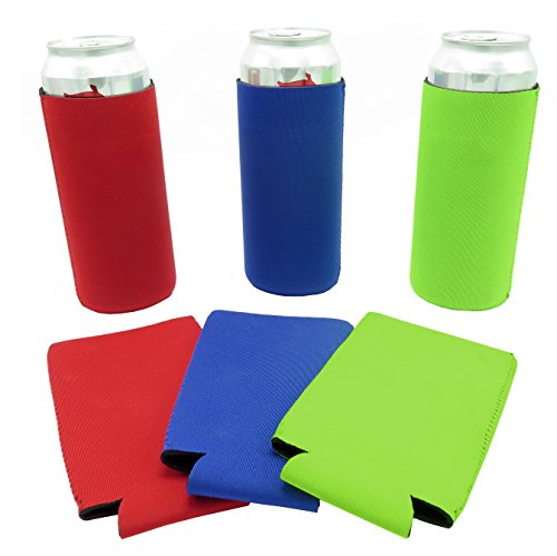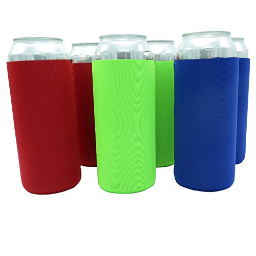 Beer Can Sleeves - Premium Set of 6 (Classic) 24 oz Collapsible Can Sleeves - Extra Thick Neoprene with Stitched Fabric Edges