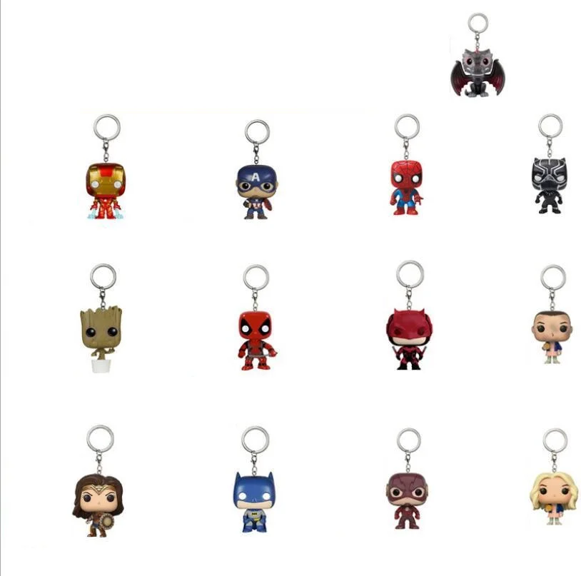 Marvel The Avengers Keychain:Spider Man Captain America Batman Flash man Tree Man STRANGER THINGS