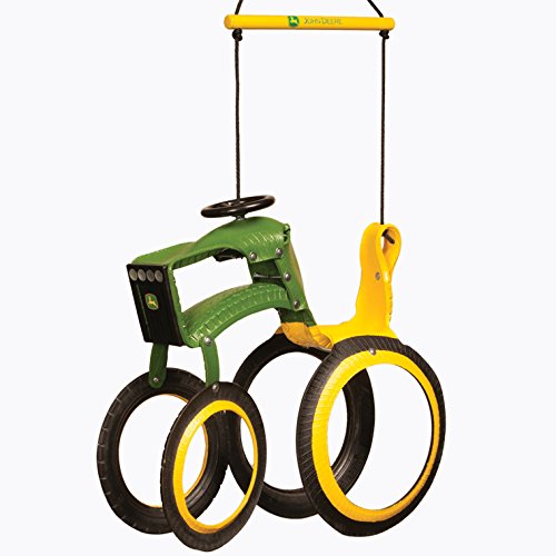 A tractor as detailed as any John Deere enthusiast would expect. Special-formulated paint and application allow this durable recycled, repurposed tire to transform into a timeless John Deere tractor. Kids can ride and let their imaginations soar as they sit comfortably due to the trademarked PVC stabilizer bar and recessed seat. 175 lb. weight capacity. 3 yrs.+ age rated. As durable as the real thing, this tractor swing can withstand the elements, as tough as a tire and with UV -resistant rope this swing will be around the yard for years.