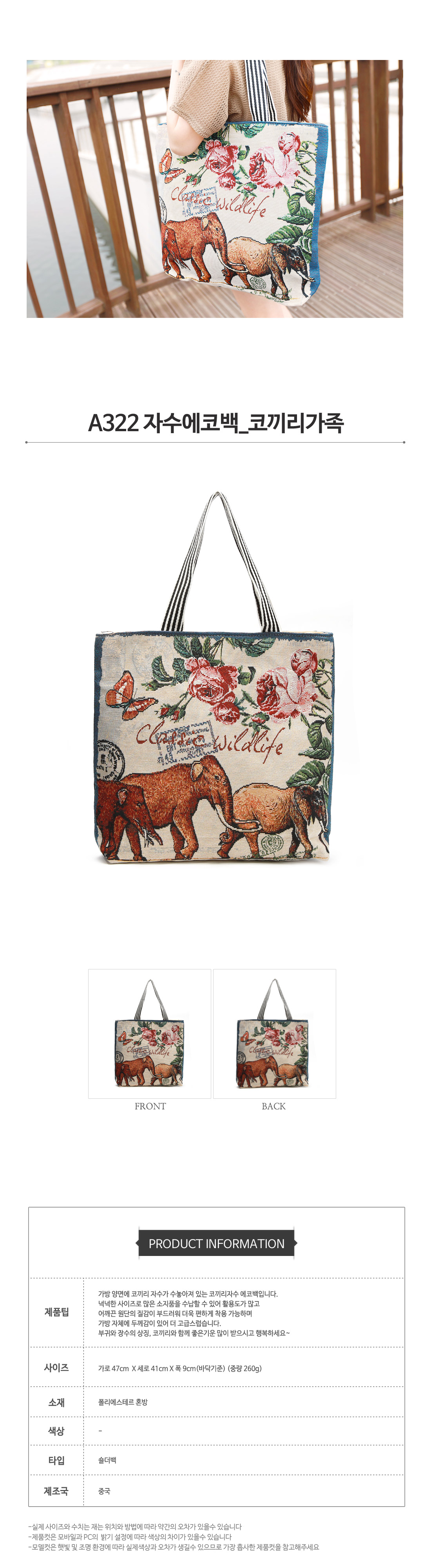 Cross Back Fashion Bag Embroidery Eco Bag Elephant Family A322 Casual Backpack Shoulder Bag