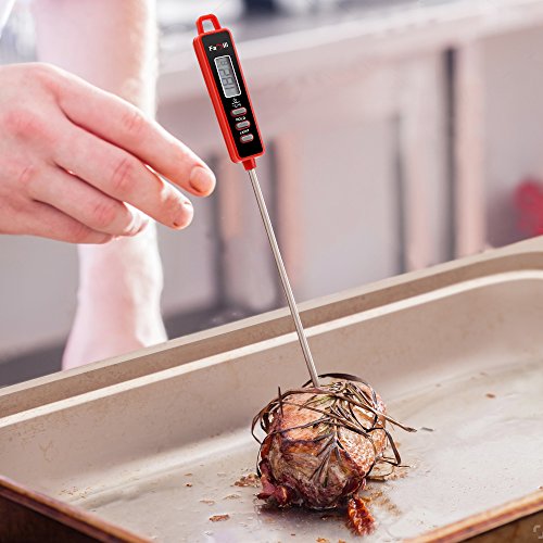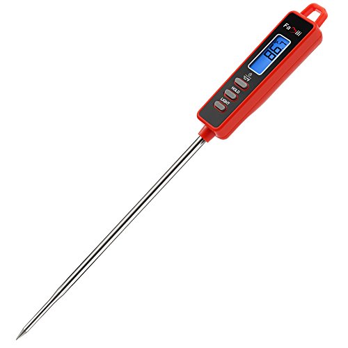 Famili FM01SRR Digital Instant Read Meat Thermometer with 5.35 Inch Long Stainless Steel probe Large LCD Screen for Christmas Kitchen BBQ Grill Smoker Food Cooking