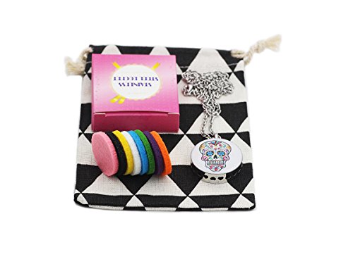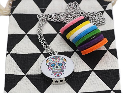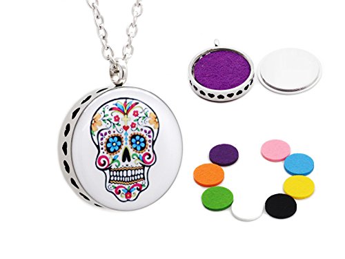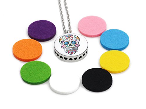 Diffuser Necklace Aromatherapy Essential Oil Locket Stainless Steel Epoxy Perfume Fragrance Pendant for Women Wiith 8 Refill Pads (Skull Head)