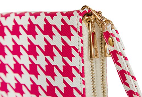 -. Title : Houndstooth P.R.Int Double Zip Wallet Purse Clutch Handbag