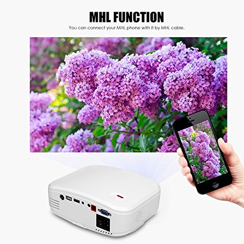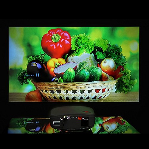 - Feature : 1200 lumens brightness and 800*480 native resolution provide exceptional display quality.Great Affordable Entry Level Video Projector For Home Theater Movie Nights, Gaming, TV, and PC Use. Tons of ways to use and simple quick set up. / Only 2.07lb and Mini Size 8.0inx6.1inx3.3in, MULTI INPUTS: HDMI(Support 1.1-1.4), USB 2.0 (Support Hard Disk), VGA (PC), Composite A/V, Headphone output, Analog TV. / Easy and quick to set up,come with Remote ControlVarible Throw Distances For Your Needs. IMAGE SIZE: 50''@1.70m 72"@2.40m 100" @3.30m 120" @4.00m - NATIVE RESOLUTION 800x480 - COMPATIBLE WITH: 720P & 1080i/p - ASPECT RATIO: 16:9/4:3 - CONTRAST: 1200:1 / Keystone Correction Function---Equipped with keystone correction function and built-in speakers / Not recommended for PPT or business presentation, ideal for home theater movies and video game use.