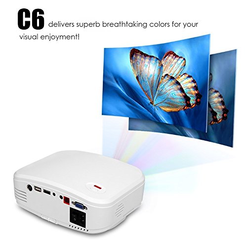 - Title : Deeplee C6 1200 Lumens 130" Great Entry Level Mini LED LCD Projector for Home Theater Cinema TV Movie Night Video Games 800x480 Pixels HDMI/USB/VGA/AV/ATV/MHL White
