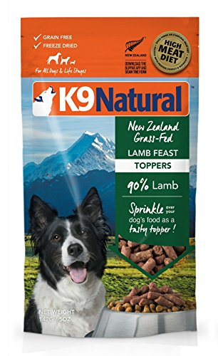 -. Feature : Contains two packs of K9 Natural Lamb Toppers / Love your dog, with naturally better nutrition. K9 Natural contains only the best blends of nature. / Free from grain, gluten, GMO ingredients, corn, soy, dairy, rice, cereals, potato or other gelling agents or fillers / Packed with fresh wholefood New Zealand ingredients, New Zealand green lipped mussels and essential vitamins, minerals & oils. / Made with 90% Free Range Grass-Fed New Zealand Meat. K9 Natural is a high meat nutrition and flavour boost your dog will love you for.