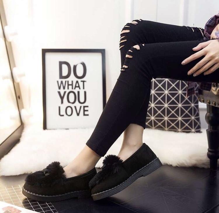 スリッポンタイプで履きやすいです☆ファーやリボンもとてもかわいくアクセントになりますよね☆