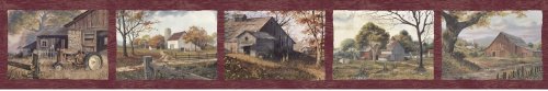 -. Title : Chesapeake PUR44591B Norm Red Quiet Country Scenes Wallpaper Border