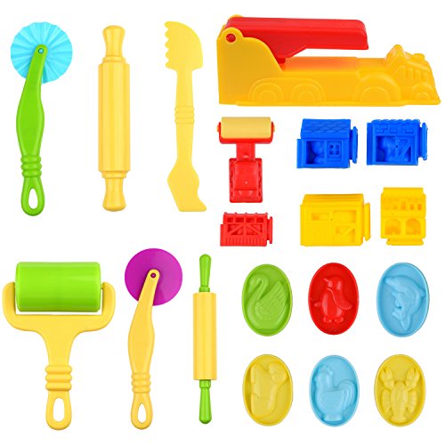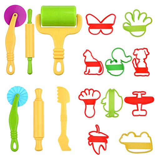 Dough Tools Kit: 24 pieces in one set (Cutouts (Flower, People, Animals, shapes) and Dough Tools).