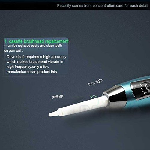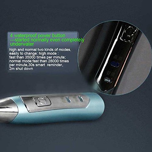 -. Feature : • Smart 30 seconds to remind, 2 minutes time, to develop a good habit of brushing science. / Clinically proven superior 3D cleaning sweeps side to side and pulsates to break up and remove up to 100% more plaque than a regular manual toothbrush / CrossAction round brush head with perfectly angled bristles for a precise clean,up to better plaque removal / Presented three brush heads, environmental health, three months to replace one, available for one year. DuPont bristles for the import of fur. / Highest level of super IPX7 waterproof, can work underwater for half an hour.