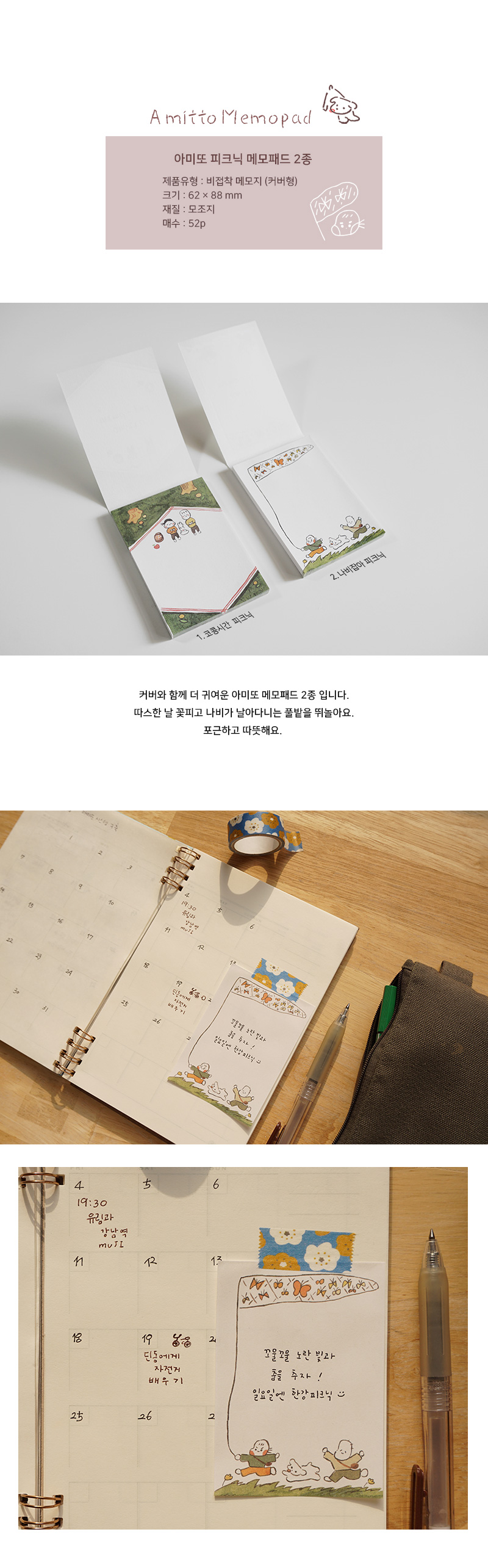 아미또프로덕트의 피크닉 메모패드 2종입니다.