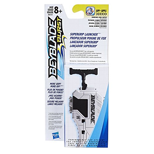 The Beyblade Burst Supergrip Launcher is built for both left and right-handers. For use with Beyblade Burst tops and Beyblade Burst Beystadium, sold separately. Subject to availability. Players can connect a second original Beyblade Burst launcher (Sold separately. Subject to availability) to the Supergrip Launcher for a double launch! The Supergrip Launcher has a larger grip area and longer ripcord than the original Beyblade Burst launcher. More grip! More rip! Scan the code on the Supergrip Launcher to unlock a corresponding digital launcher in the Beyblade Burst app! Beyblade Burst tops bring wild fun to the Beyblade Burst Beystadium. Your opponent’s top can "burst" into pieces, resulting in 2 points for the player left standing (Burst rates vary). First player to 3 points wins! Energy Layers, Forge Discs, and Performance Tips are interchangeable with other Beyblade Burst tops, for customization. Beyblade Burst tops come with a scan-able code, giving access to these tops in the Beyblade Burst app. The app allows for play with combinations of Performance Tips, Energy Layers, and Forge Discs within stadium atmospheres. Play in the app with these creations. Scan the code on a Beyblade Burst top to unleash it in the Beyblade Burst app. Let it rip! For use with Beyblade Burst tops and Beyblade Burst Beystadium, sold separately. Subject to availability. Manufactured under license from TOMY company, LTD. Hasbro and all related terms are trademarks of Hasbro.
