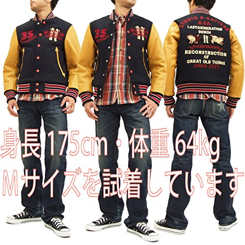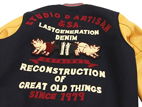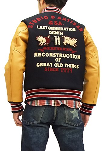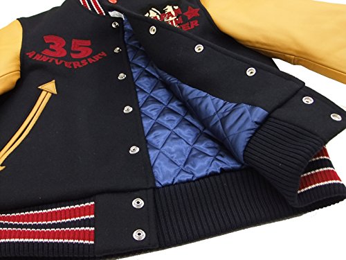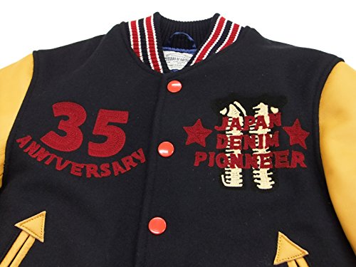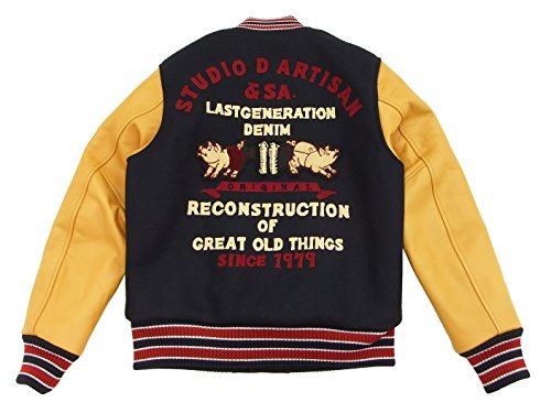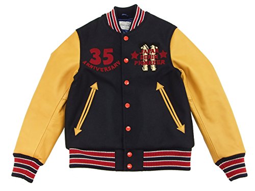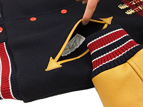 Binding : Apparel Product Description Size(in inch)/Body Width /Body Length /Sleeve length /Shoulder width(Medium) 20.5in 24.8in 33.1in 16.9in(Large) 21.7in 25.6in 34.6in 18.1in(X-Large) 22.8in 26.4in 35.0in 18.9inFeaturing American casual (fashion design) and designs, the lineup includes pieces in Japanese sizes and silhouettes, with the materials and details retooled for today's taste. They've been customized to make them suitable for use in town, not just on special occasions.The body features a robust two-ply melton fabric that is 90% wool, 10% nylon. The thick, dense melton wool is durable and retains warmth. The napped fabric features a dense pile of nylon wools and it will break in and develop your design as you wear it.Lines in 100% polyester for a smooth wear. This lining is designed to not snag on clothing. No internal pockets.The inner lining has been quilted with a diamond overstitch, with a moderate amount of polyester batting inside. Not overfilling the batting keeps the jacket from looking bulky and ensures a clean silhouette. The quilted overstitch keeps the batting from shifting around as you move.Meanwhile, the ribbing at the collar, cuffs, and hem is striped for a sporty look. The ribbing at the collar and cuffs is not designed to be folded over.The front buttons feature a simple snap closure, and the hips have dual welted pockets cut at an angle and with leather trim. The edges of the welted pockets are finished with a triangular stitch like you would find in stadium and souvenir jackets.The front features a fully chain-stitched embroidered accent. The back features a mix of chain-stitch embroidery and a sagara (knotted) felt patch.This luxury varsity jacket (award jacket;college jacket; baseball jacket) features the finest quality horsehide from Kiryu, Gunma Prefecture. The refined and elegant vintage-inspired design make this something you will wear for years to come 0