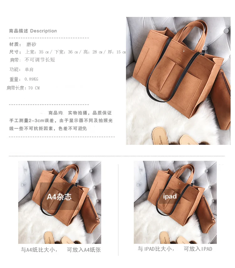 Model Number:Women Bag Large Capacity Brown Suede Bag Vintage Leather Handbags