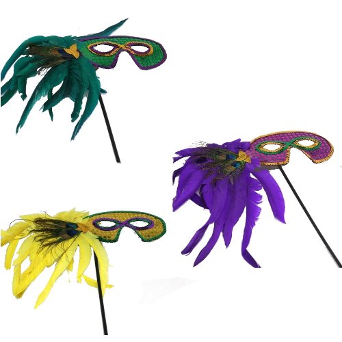 -. Binding : Toy -. Brand : Fun Express -. Color : multicolored -. Department : womens -. EAN : 0887600297678 -. Feature : One mask per package. / Half face mask. / Sequin mask with feather adornments. / Assorted colors. / Each mask is on 11″ long plastic stick. -. Label : Fun Express, Inc. -. Manufacturer : Fun Express, Inc. -. MPN : 31/31-P -. PackageQuantity : 1 -. PartNumber : 31/31-P -. ProductGroup : Toy -. ProductTypeName : TOYS_AND_GAMES -. Publisher : Fun Express, Inc. -. Studio : Fun Express, Inc. -. Title : Mardi Gras Handheld Feather Mask (Sold Separately) -. UPC : 887600297678