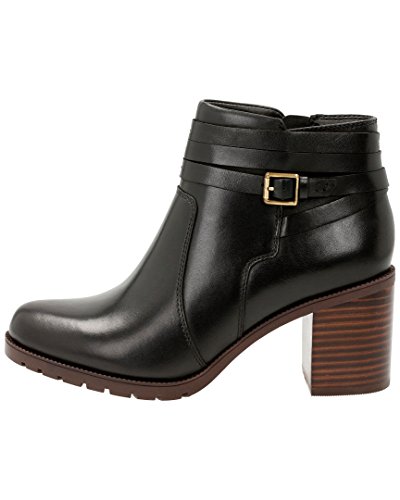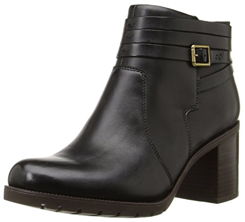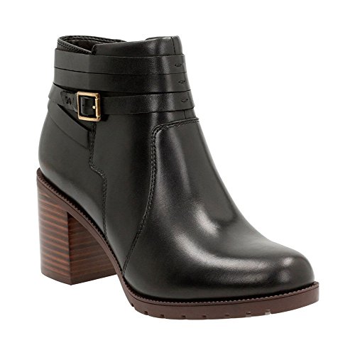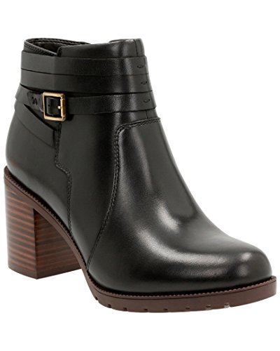 Studio : Clarks Publisher : Clarks Binding : Shoes Product Description Expertly crafted of rich leathers and buckle detailing, this women's block-heeled bootie delivers the perfect balance of style and comfort you expect from Clarks® artisan. Features include a side zipper entry, synthetic linings, Clarks plus intelligent underfoot cushioning, ortholite® footbed, and TR outsoles. This versatile boot gives a lift to your wardrobe and makes an easy transition from work to a night out. 0