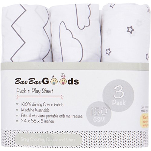 Studio : BaeBae Company Publisher : BaeBae Company Binding : Baby Product Product Description FINALLY! Super cute sheets that are amazing quality! When you receive our 100% Jersey Knit Cotton Pack n Play sheets set you will want to use these sheets for your own bed. We know that as a mother, you go through so many dirty sheets day in and day out, which is why you'll receive a set of 3 so you will ALWAYS have a clean set on hand! The sheets are super soft and made at 150 GSM to be well enough to last through all your children for years to come. Click on the "Add to Cart" button now and buy with confidence as you are covered with our 90 day WARRANTY, NO QUESTIONS ASKED! 0