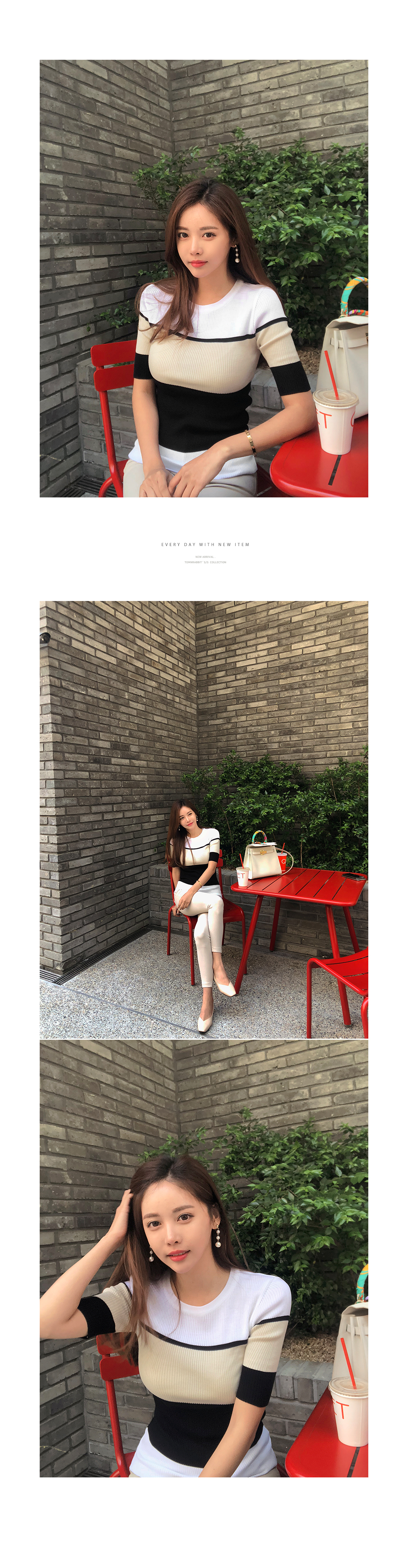 데일리룩에 여성스러운 무드를 연출해줄 배색니트 소개할게요.