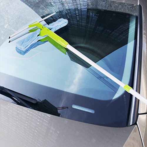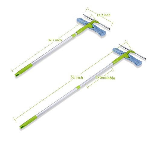 -. Feature : ✅【2 in 1 Window Cleaning Kits】: ☞ Multifunction winow cleaner with squeegee and microfiber cloth together / ✅【Super Telescoping Function】: ☞Min Length 83cm, Max Length 130cm which can clean very high windows. Normally housewife height around 160-165, add this 130cm which can clean at least two floor high windows. This is not the old edition max 89cm, this max length around 130cm. / ✅【Best Microfibre Quality】: ☞The length of microfibre is 35cm. Microfiber can use at least one year. / ✅【Light Weight】: ☞ The total weight of the fensterreinigers is only 300g. Very light, can save your effort when you clean your high windows. / ✅【Aluminium - Clips】: ☞The aluminium clips are foldable and compatible with other rubber blades. You can save your space when you put this window squeegee at your home if you no need to use it.