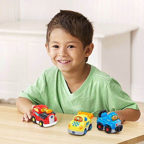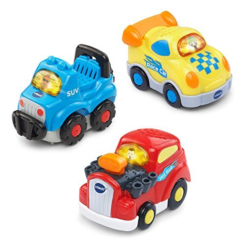 -. Binding : Toy -. Brand : VTech -. EAN : 3417762073093 -. Feature : The set comes in a pack of 3: Go! Go! Smart Wheels Hot Rod, Go! Go! Smart Wheels SUV and Go! Go! Smart Wheels Race Car I / Perfectly sized for little hands. Teaches the letter of the vehicle's name, and more through pretend play / Light-up driver button activates learning, music and sounds / Each vehicle responds electronically to over 50 SmartPoint locations on all Go! Go! Smart Wheels Playsets / Includes 3 sing-along songs and over 40 unique educational phrases and sounds in every vehicle. Each push toy vehicle operates on 2 AAA batteries that are included; automatic power-off saves batteries -. IsAdultProduct : 0 -. Label : VTech -. Manufacturer : VTech -. MPN : 80-207309 -. PackageQuantity : 3 -. PartNumber : 80-207309 -. ProductGroup : Toy -. ProductTypeName : TOYS_AND_GAMES -. Publisher : VTech -. Studio : VTech -. Title : VTech Go! Go! Smart Wheels - Recreational Vehicles 3-pack