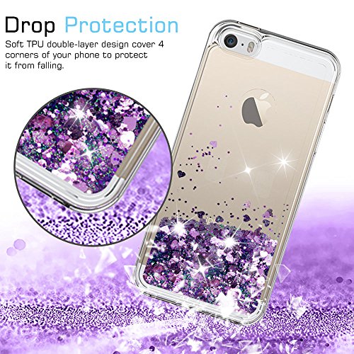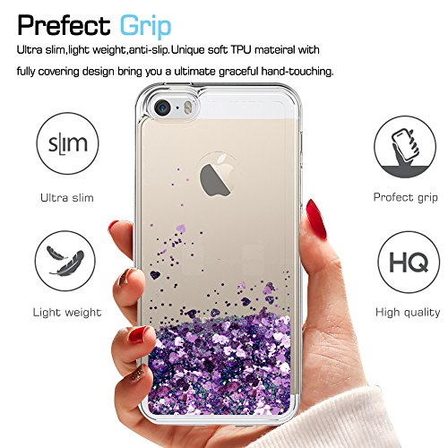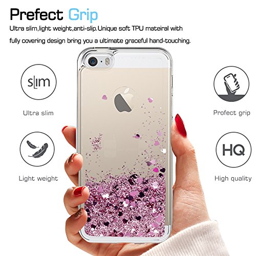 -. Title : iPhone 5S Case,iPhone 5 Case,iPhone SE Case with HD Screen Protector for Girls Women,LeYi Cute Shiny Glitter Moving Quicksand Liquid Clear TPU Protective Phone Case for iPhone 5S / 5 / SE ZX