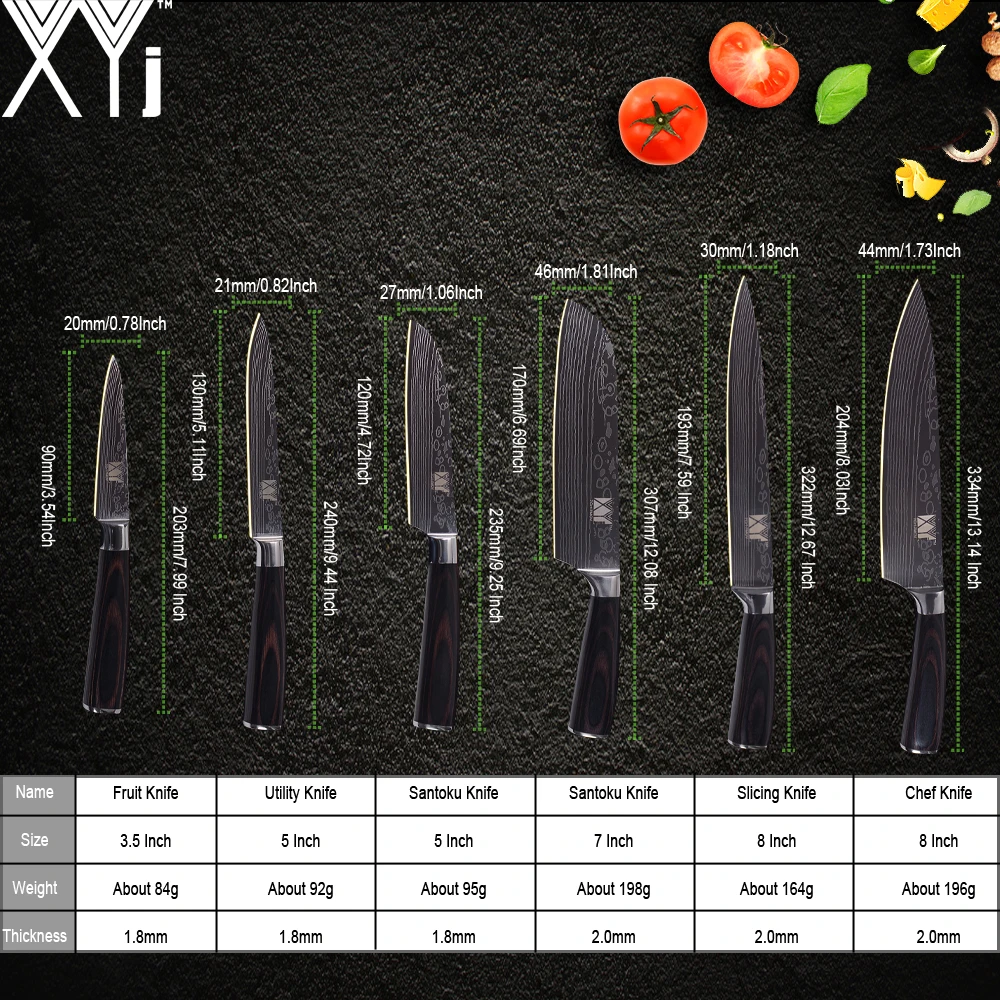 Knife Style :Chef, Slicing, Santoku, Utility, Paring Knife