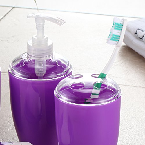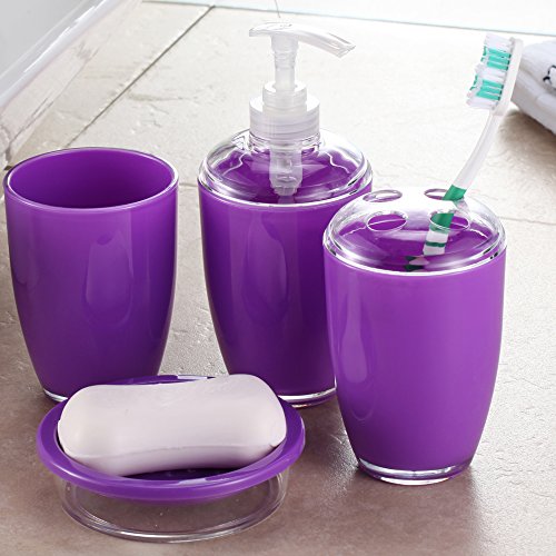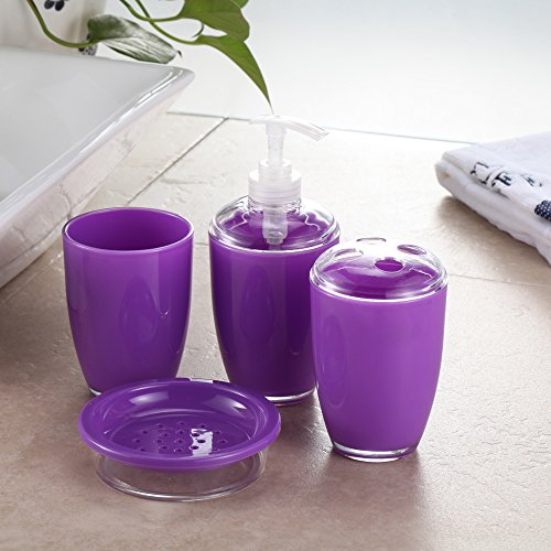 Purple Bathroom Accessories Set, Soap Dispenser, Toothbrush Holder, Bathroom Tumbler, Soap Dish 4 Pieces