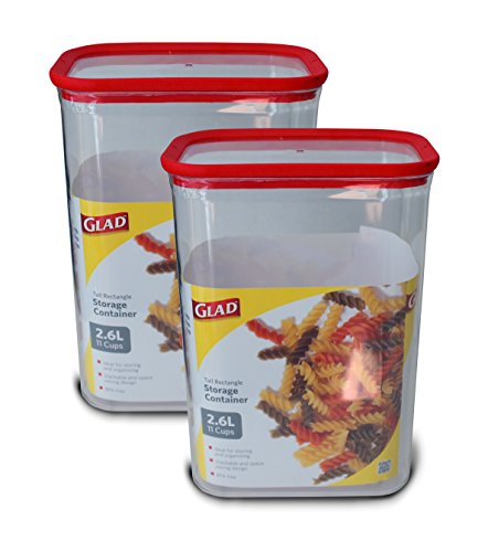 - Glad Dry Food Storage, Tall Rectangle, 2.6 L (11 cups), Pack of 2, BPA Free