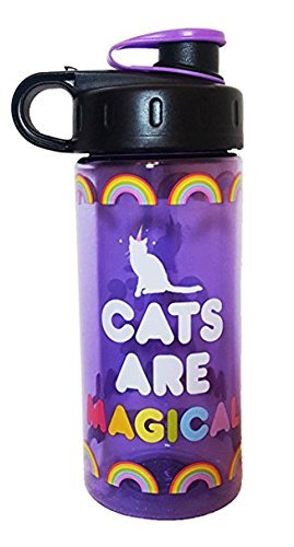 Cool Gear Plastic Water Bottle ''Cats Are Magical'' & Rainbows Design With Carry Loop BPA Free 16oz