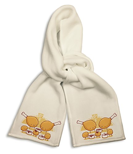 White Winter Scarf - Funny Fried Chicken Legs Nuggets w/Dipping Sauce