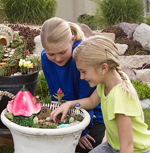 - BRIGHT AND COLORFUL - Our Lily Flower Fairy Garden House uses the colors Pink, Green, and Brown throughout the design. Careful attention to detail makes our Lily Flower Fairy Garden House a superb addition to your Flower Garden or as an accent piece to your outdoor living space. Place it along your favorite tree line, by the entrance to your home, or near your children's play area to add a bit of 'whimsy' to your home!