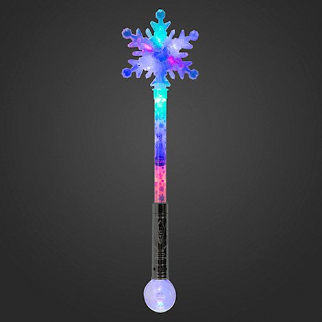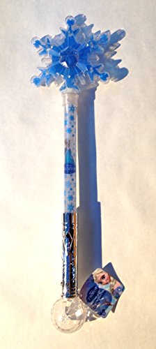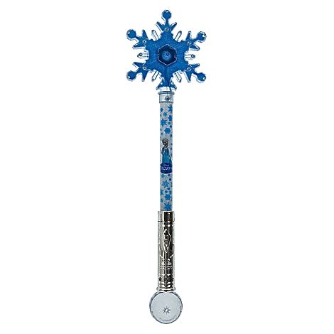 Disney park exclusive plastic color changing light up sparkle frozen snowflake wand approx> 15" long VERY bright flashing lights 3 settings push button frozen logo on base