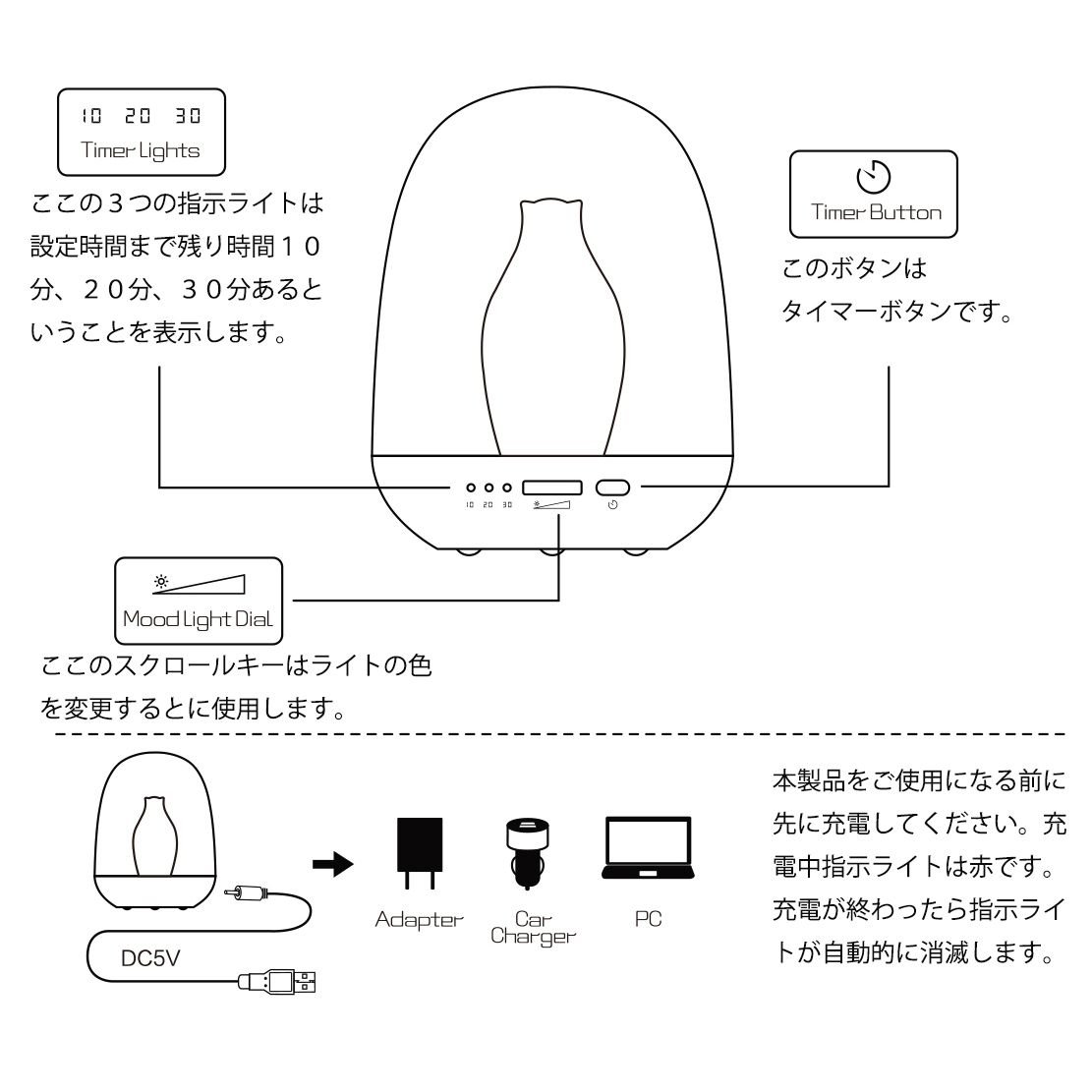 Light mode: RGB color adjustment mode, timer mode
