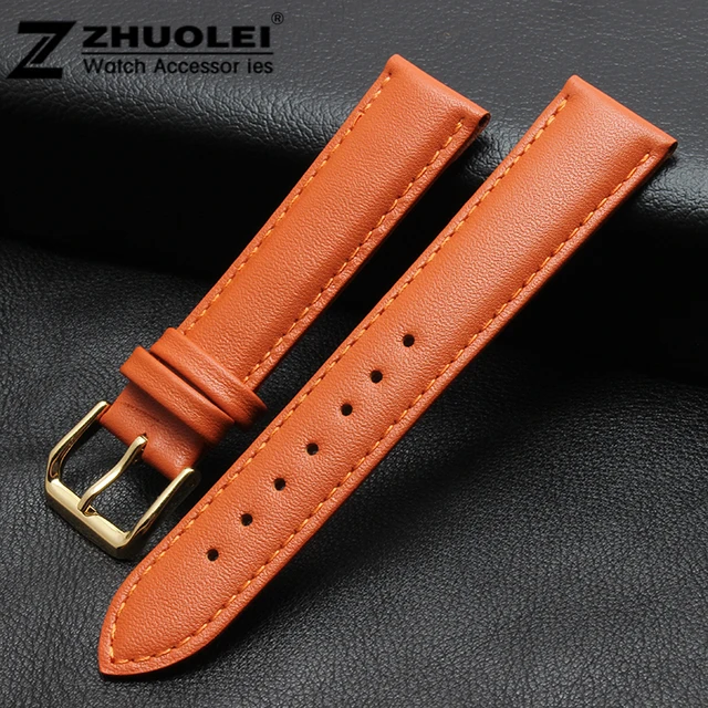 | [해외] 시계 스트랩 18 미리메터 20 미리메터 22 미리메터 오렌지 정품 가죽 시계 밴드 디플로 스트랩 |