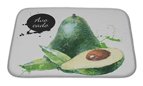 Gear New No Slip Microfiber Memory Foam Hand Drawn Watercolor Painting Fruit Avocado Bath Rug Mat, 24" X 17"