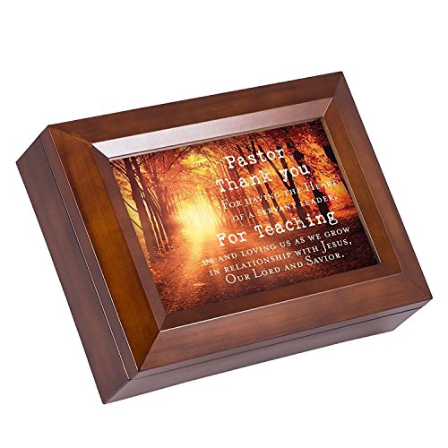 Pastor Thank You Wood Finish Jewelry Music Box Plays You are My Sunshine