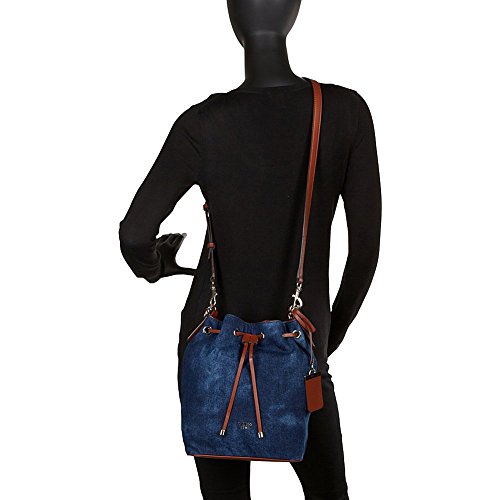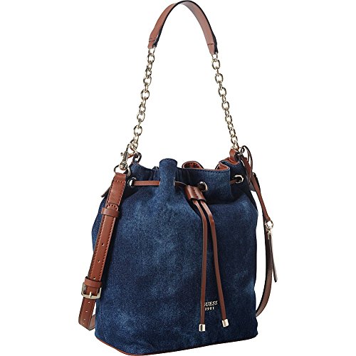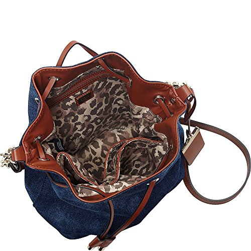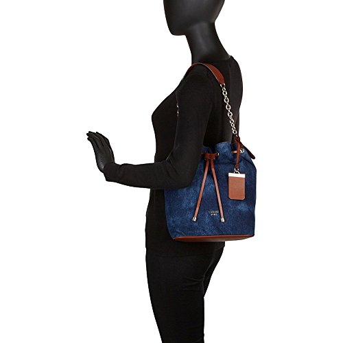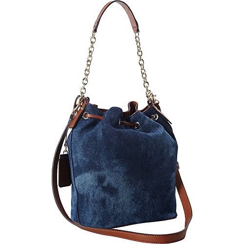 A brand-new take on the so-now bucket bag, this accessory is one to own. Constructed with tie-dyed indigo denim and faux-leather trim then finished with light-catching hardware, it's just what your handbag collection is missing.Feature