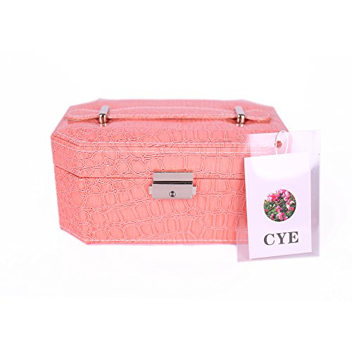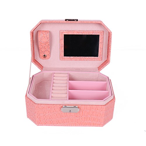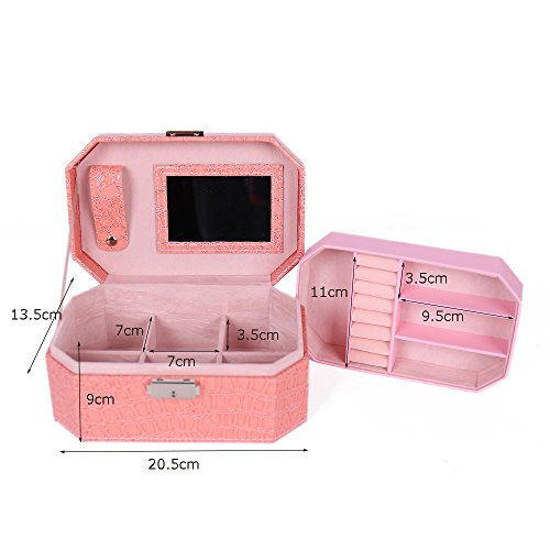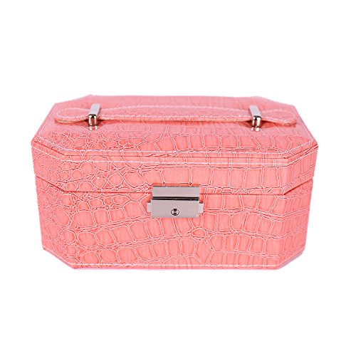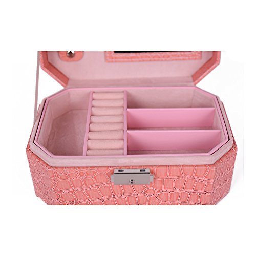 Double Layer Jewelry Box with Lock, PU Leather Necklaces Bracelets Rings Display Organizer Storage Case Box (Pink)
