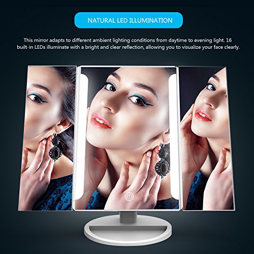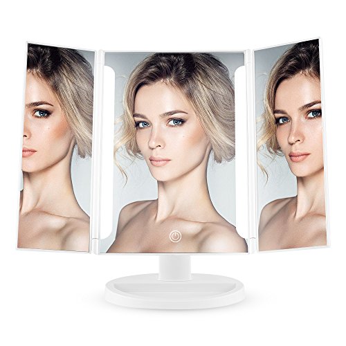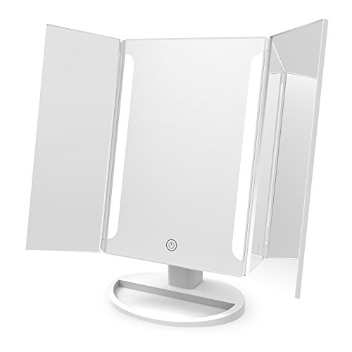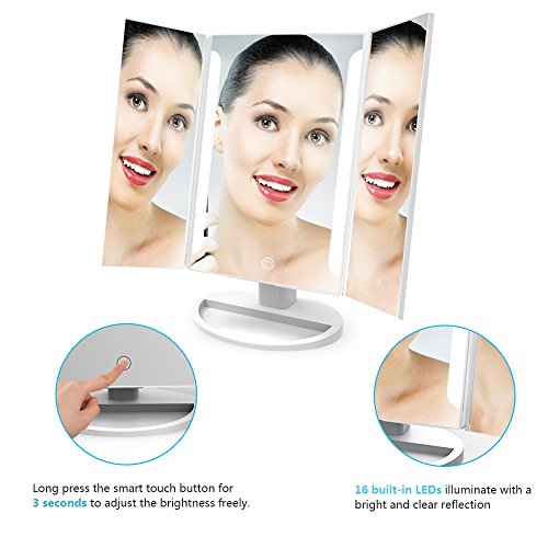 Lighted Makeup Mirror: 3 Panel provide a wide-angle viewing for you to see clearly your facial features and make a more perfect makeup with each detail taken care of. Touch screen switch, smart and simple operation.